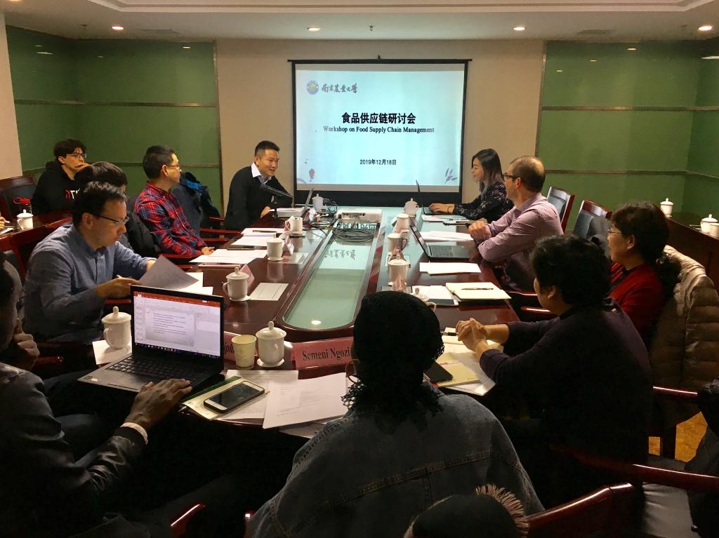 12月18日上午,刘爱军副教授课题组Workshop on Food Supply Chain Management(食品供应链研讨会)在翰苑学术交流中心7楼1号会议室成功举办,出席本次会议的有康奈尔大学Dyson应用经济与管理学院MiguelI.Gómez副教授、李捷博士,上海农业科学院俞美莲副研究员、刘增金副研究员,江苏农科院汪翔副研究员、陆建珍副研究员,beat365正版唯一官方网站副院长易福金教授,韩纪琴教授,金融学院刘晓玲副教授和中外留学生等20多人。会议由beat365正版唯一官方网站刘爱军副教授主持。
