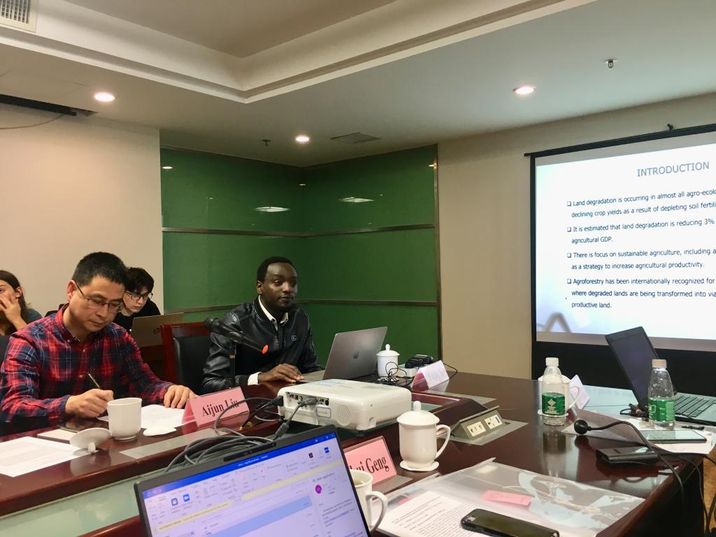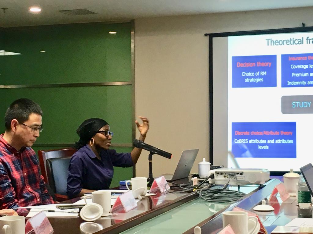肯尼亚艾格顿大学赴我校访问学者Semeni Ngozi女士,beat365官网研究生Maurice Osewe 和Kevin kiplimo 分别从小农作物保险、农民引导下的灌溉、林农复合技术采纳行为等角度进行了汇报。