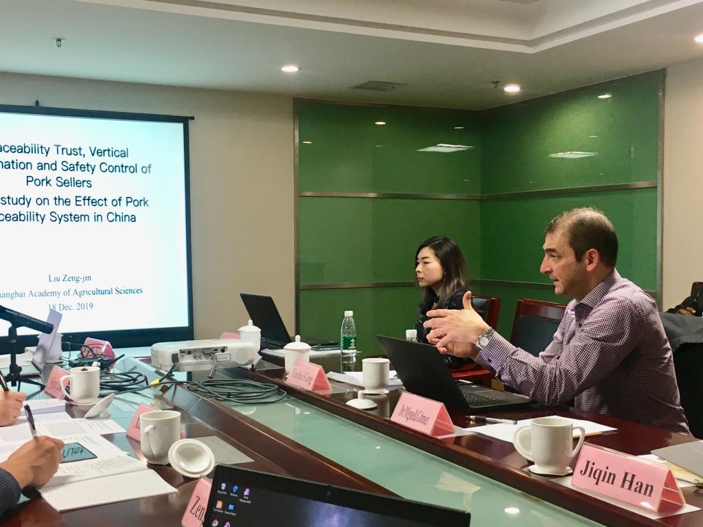 MiguelI.Gómez副教授首先分享了其项目组当前食品供应链安全研究现状和未来研究方向,刘增金副研究员和俞美莲副研究员分别就中国的猪肉可追溯体系和中国食品安全管理作了报告,汪翔副研究员围绕甘薯产业发展和供应链研究设想做了报告。