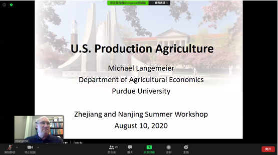在本次访学交流中,普渡大学11位教授为同学们准备了内容丰富的专题讲座,围绕美国的农业概况,大宗农产品市场、农商产业组织、食物产业链及新冠、食物市场营销、美国畜牧业、国际贸易、替代能源、农业金融信贷、气候变化,与大家进行了在线交流讨论。