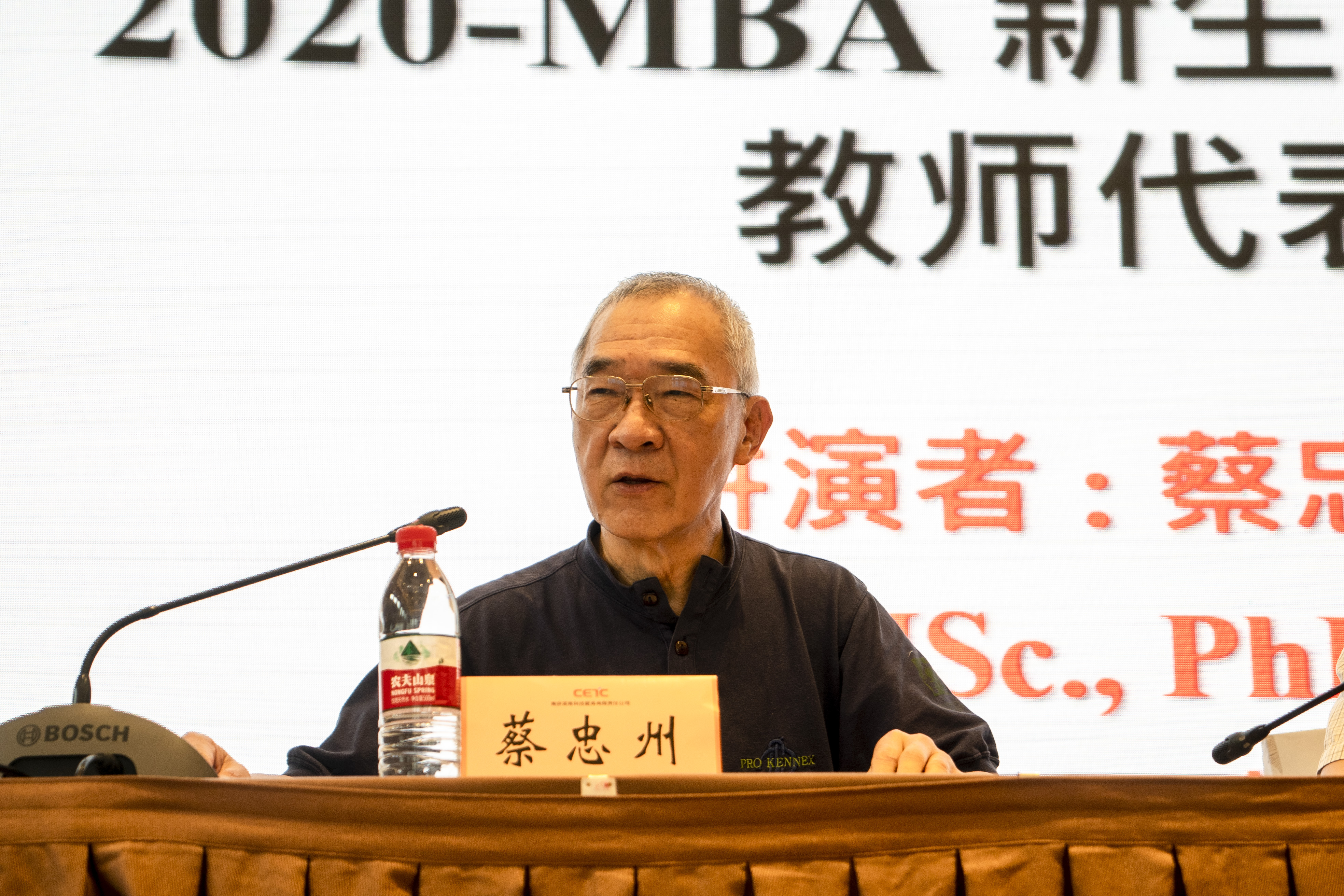 蔡忠州教授代表MBA教师致辞,他以南农的教学体系为切入点,讲述南农MBA为学生提供的学习价值、成长价值、国际舞台等丰富的个人价值的提升。分享了他对中国将出现的8大变革的预测与解读,从技术、认知、习惯、关系、品牌、传播、财富、城市方面对中国智能城市进展与价值的影响。殷切希望在座的MBA学子在学习的过程中,能够端正态度,提升价值,带着问题展开学习,带着收获回馈企业和社会。