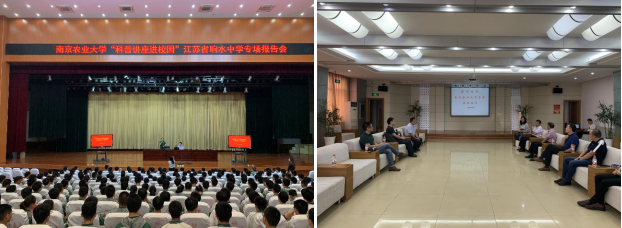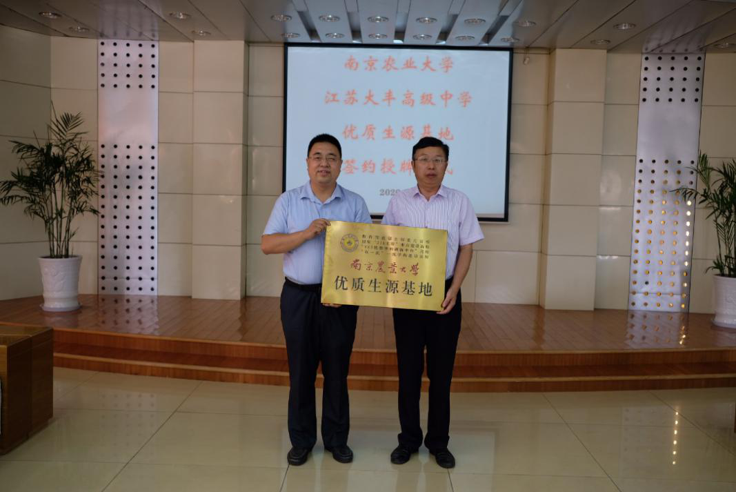 9月26日-28日,经管院赴江苏省大丰高级中学和江苏省响水中学开展招生宣传共建活动,并与江苏省大丰高级中学举行了“优质生源基地”协议签订及授牌仪式。beat365正版唯一官方网站党委副书记宋俊峰、电子商务专业刘爱军副教授、金善宝农业现代化发展研究院(省重点智库)办公室主任赵士海、本科生辅导员李扬、研究生辅导员梁雨桐与两所中学的校领导、教务处主任在两所中学进行了座谈交流,并向高中学生进行了beat365正版唯一官方网站校情介绍和历年招生政策宣讲。刘爱军副教授应邀为300余位高中学生作了题为《农产品营销与品牌建设》的科普讲座,取得了良好的宣传效果。