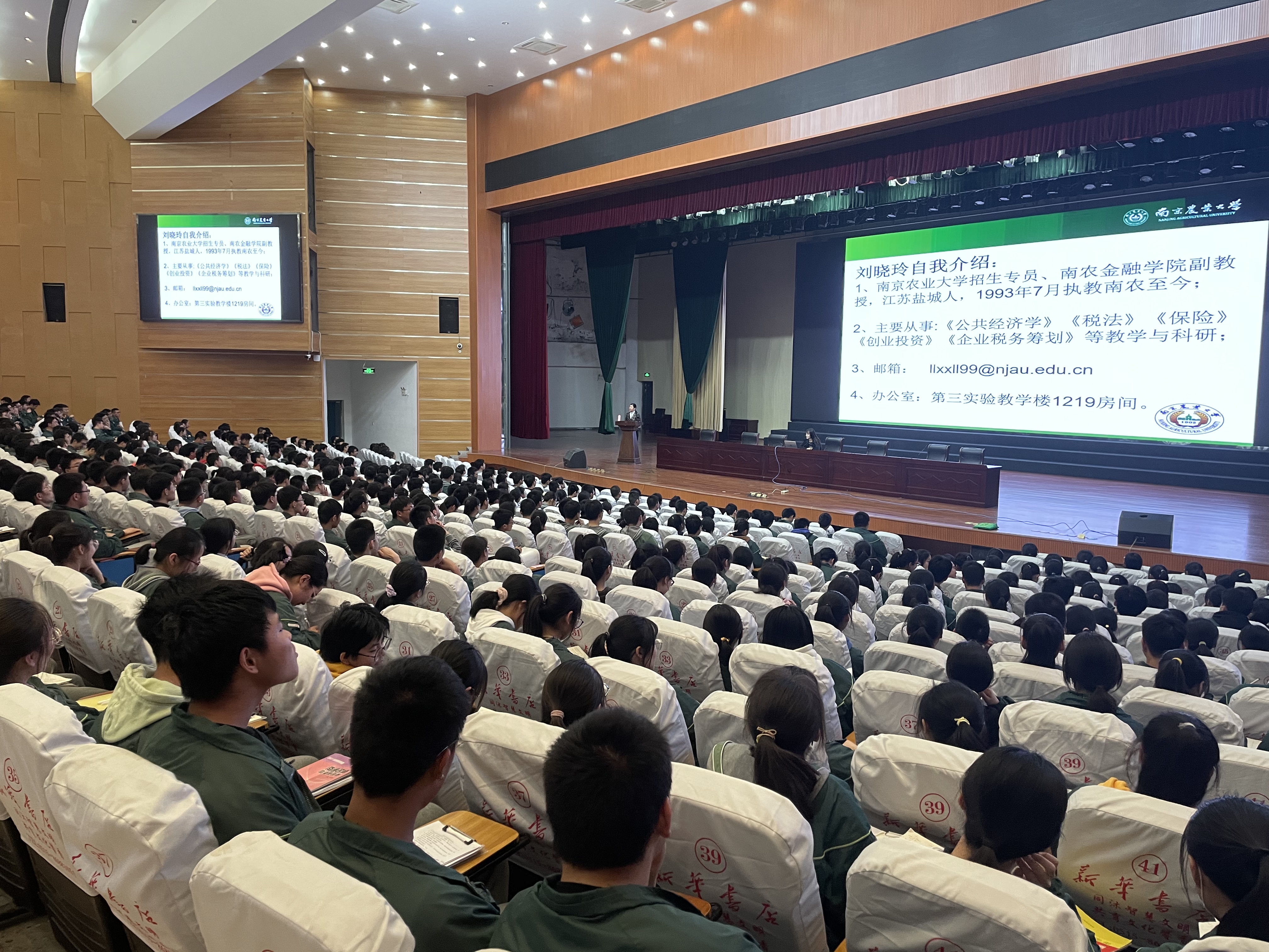 双方还举行了优质生源基地签约授牌仪式。刘晓玲副教授为阜宁中学、响水中学、滨海中学近千名学生作了题为《人间四月天 税收宣传月》的科普知识讲座,在场学生积极互动。