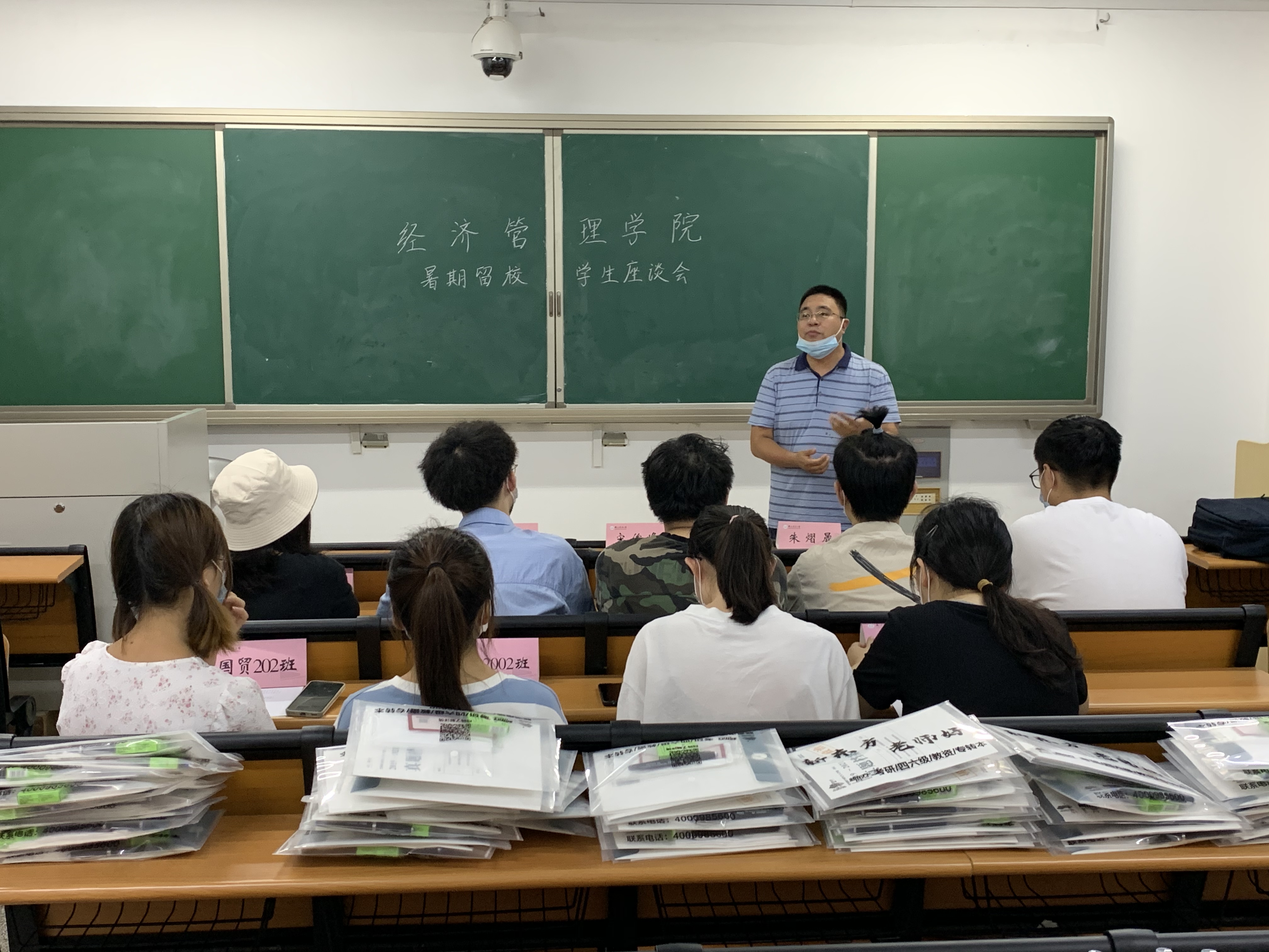 会后,老师们为留校学生送上防疫物资及考研资料,并勉励同学们放假不放松,学业更轻松。同学们纷纷表示,深刻感受学院温暖,深切体会领导关怀,定会严格遵守学校疫情管理办法,认真学习,踏实工作。