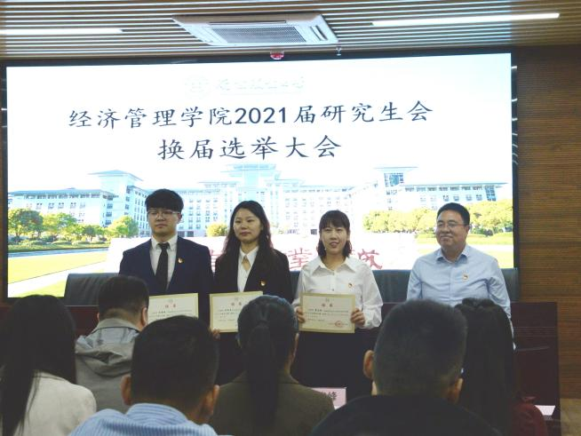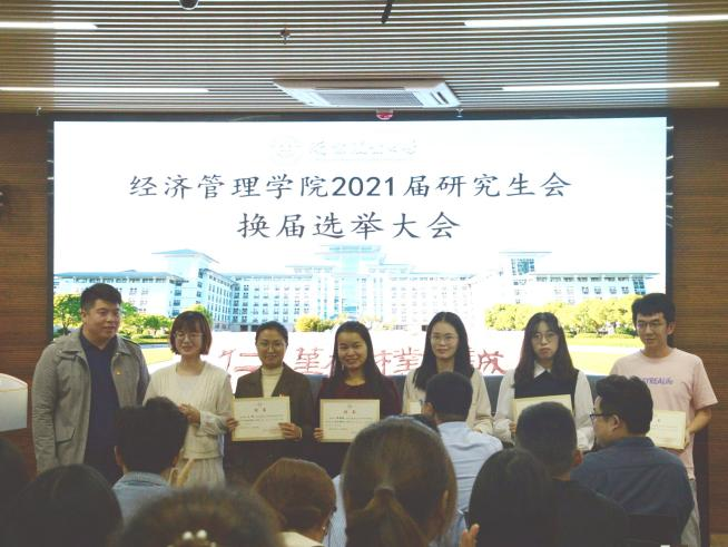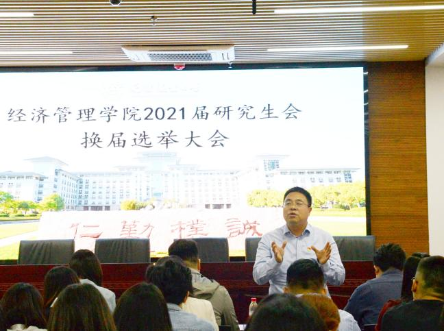 10月12日下午18:30,beat365正版唯一官方网站2021届研究生会换届选举大会在第三实验楼706召开。经管院党委副书记宋俊峰,研究生院综合办公室主任孙国成,辅导员路行、梁雨桐及2020届经管院研究生会代表和各班级代表参加会议。会议由研究生会执行主席赵谦诚主持。