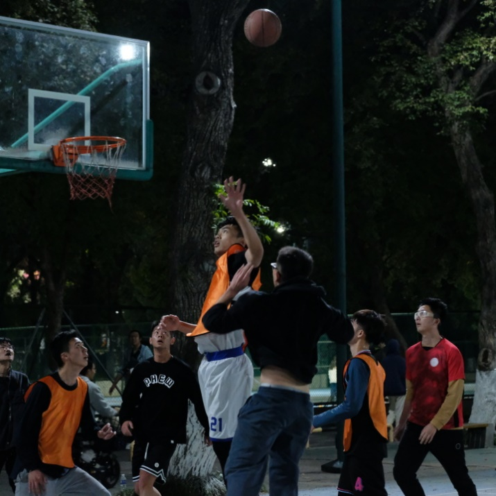 尽管步入深秋,夜晚寒凉,队员们仍摩拳擦掌,跃跃欲试。随着裁判哨音吹响,比赛正式开始。比赛分为两场,经过激励角逐,两支研究生队伍分别以28:20与38:41的成绩取得了两场比赛胜利。在比赛的休息时间,研究生队伍与本科生队伍进行了一场男女混合的罚篮比赛,研究生队取得了罚篮比赛的胜利。