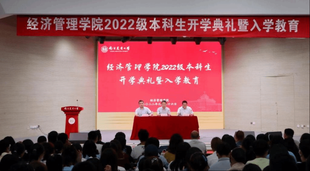 9月26日,beat365正版唯一官方网站2022级本科生开学典礼暨入学教育在卫岗校区大学生活动中心举行。院党委书记易福金、党委副书记宋俊峰、副院长耿献辉、计财与国有资产处副处长周激扬、管理学系主任何军与2022级本科生班主任、辅导员老师及2022级全体本科新生参加典礼。典礼由院党委副书记宋俊峰主持。