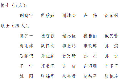 根据《关于做好2024届优秀毕业研究生评选工作的通知》,经自主申请、公开答辩、学院评审,拟推荐以下5名博士、25名硕士为2024届优秀毕业研究生(名单按姓氏首字母排序)。
