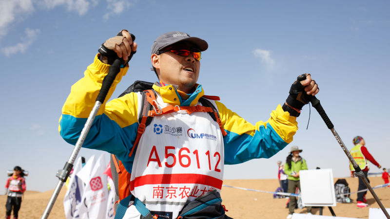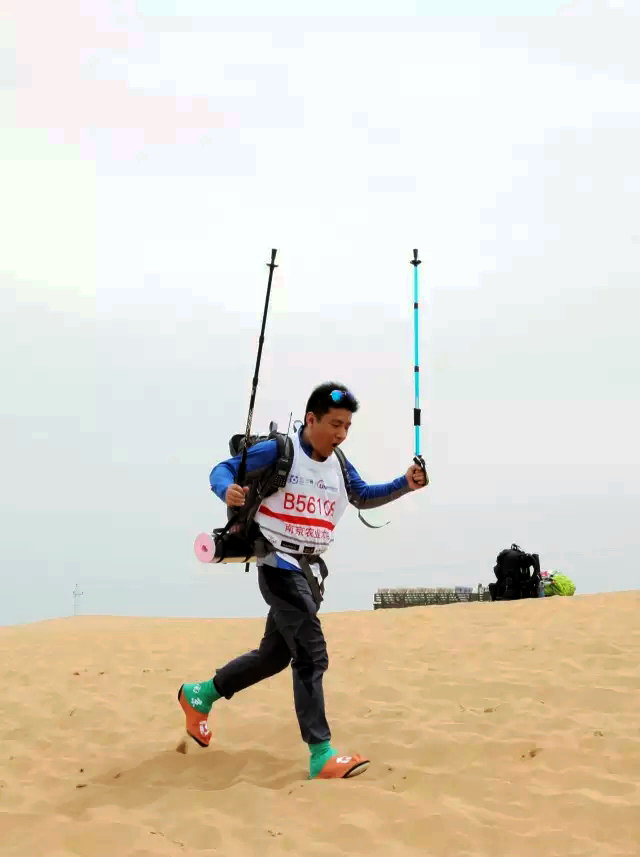 刘真臻 队员决定参加亚沙,不是为了超越任何人,只是对自己的挑战,对身体、意志和信心的磨砺。在沙漠中行走,拖着凝滞疲惫的身躯,感受酷热灼人的干渴、不断流失的能量,体会孤独和责任,同时也收获了许多感动,陌生人的加油,沙友伸出的援手,队员们的欢声笑语。当不知终点的时候,有那么一瞬间我感到自己已无法前行,但到达比赛终点我又感觉自己还有余力。人如果不逼自己,也许不能确认是不是真正的极限。唯有坚持才能战胜一切。