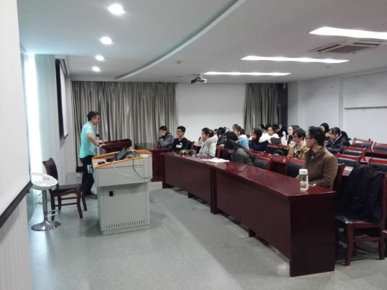 首先上场的是沈艳斌学长。他直切要害,通过与台下同学的互动引出了面试时自我介绍的技巧,并详细讲述了他成功拿到包括苏宁在内等五个公司offer的面试经历,使大家深为敬佩的同时感受到了今后社会竞争的残酷性。相应地,他提起自己大学四年的学习、工作及实习经历,鼓励大家读自己想读的书,做自己想做的事,为大家在不久的将来如何从就业大军中脱颖而出开出了一剂长效药。