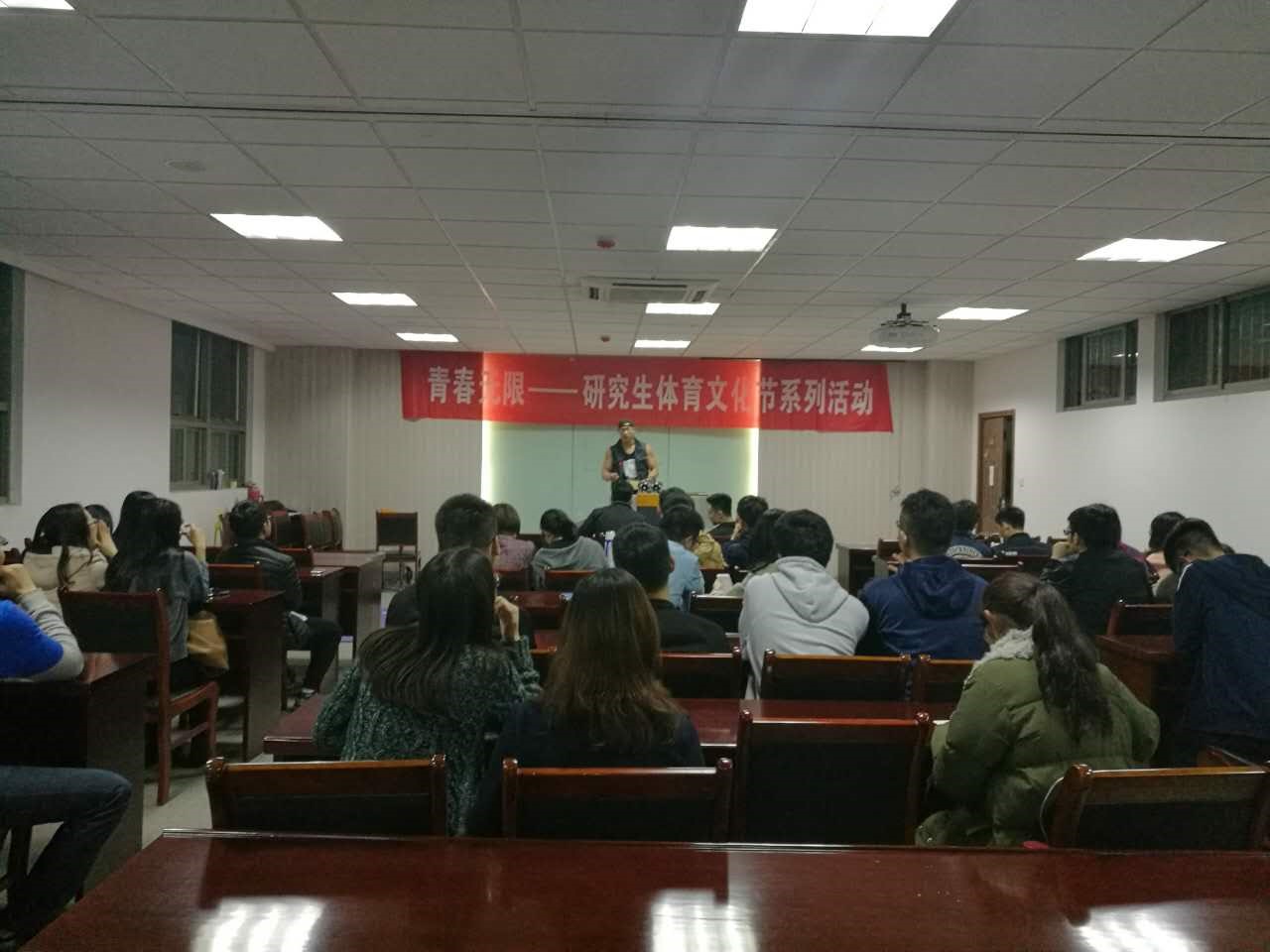 3月29日,beat365官网“青春无限”—研究生体育文化节之健身讲座活动在逸夫楼5078正式开幕。南京体育学院运动康复学专家、国家职业健身教练、国家体能训练师、街头健身培训师——林枫给beat365官网研究生带来了《大学生宿舍健身及运动康复训练》专题讲座。本次活动经管院研究生会体育部主办。beat365官网七十余位研究生参加了此次活动。