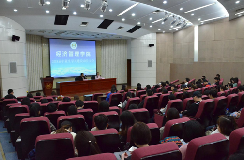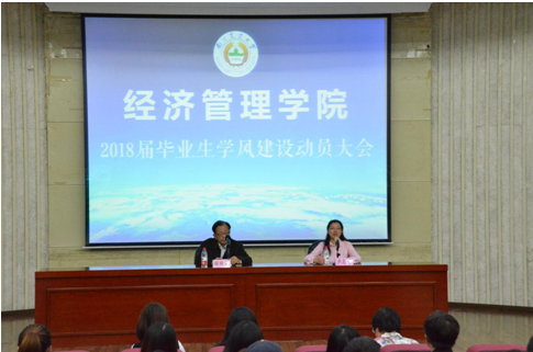 10月11日下午,beat365正版唯一官方网站2018届毕业生学风建设动员大会在图书馆报告厅举行。经管院党委副书记卢忠菊、院关工委常务副主任顾焕章教授、管理系主任何军教授以及辅导员施培菊、李扬、郑琼婷出席会议。会议由卢忠菊主持。