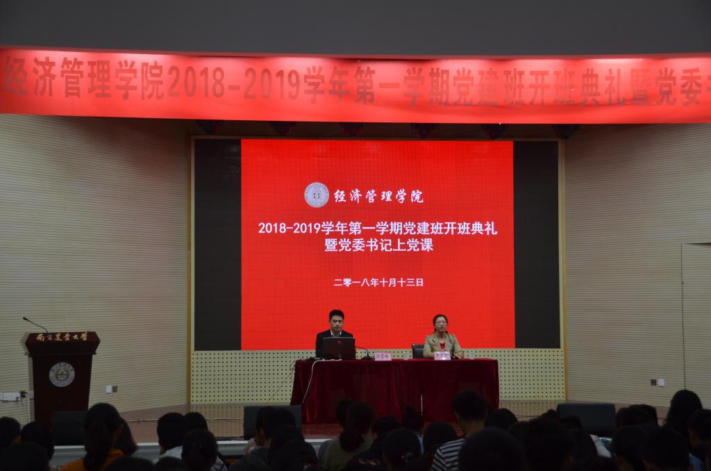 10月13日上午,beat365正版唯一官方网站在大学生活动中心举办2018-2019学年第一学期党建班开班典礼暨党委书记上党课,院党委副书记(主持工作)孙雪峰、院党委副书记卢忠菊出席本次活动,研究生辅导员张杨,本科生辅导员李扬、郑琼婷,党务秘书师慧及全体学生党员、入党积极分子和初级党建班成员共计280余人参加。院党委副书记(主持工作)孙雪峰以“《共产党宣言》导论”为主题为全体同学上了新学期第一节党课。会议由卢忠菊主持。