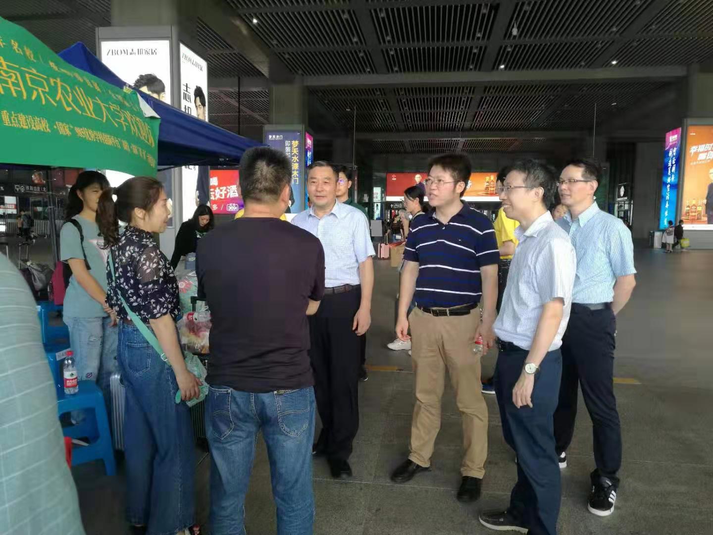 学校领导高度重视迎新工作。9月6日,校党委副书记刘营军一行前往迎新第一线——南京南站,实地察看了迎新接待点并详细询问了新生接待的相关情况。刘书记亲切慰问了志愿者团队,对同学们在接待活动中展现出的南农人诚朴勤仁的优良素质和热情周到的服务态度表示肯定。刘书记说,接待工作是beat365正版唯一官方网站对于新生热烈欢迎的体现,南京南站是新生接待的第一站、第一线,志愿者们要发挥好“排头兵”作用。