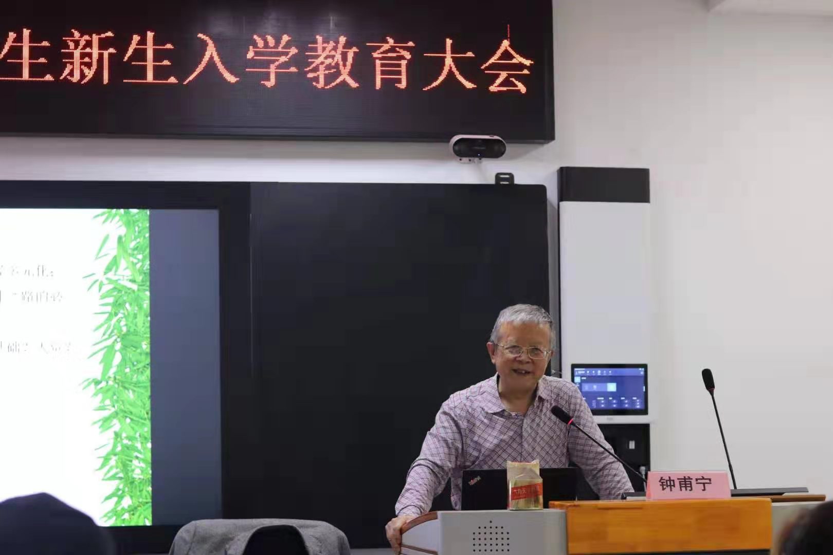 在大会第二部分,钟甫宁教授为2019级全体研究生新生上入学教育课《从我的求学之路说起》。钟教授从自己中小学教育、插队十年、大学和留学生涯经历,和beat365官网杰出校友耶鲁大学陈希教授的经历说起,让大家思考走向成才之路的必要条件是什么。他告诉同学们,兴趣比功利更重要也更有力量;知识点重要,知识点之间的联系和逻辑关系更重要;要勤于动脑,也要勤于动手;各领域都要从经典著作开始读;不同流派的著作要对照着读,把握异同点及其背后逻辑;要重视相互交流和批评,对事不对人;逐步构建适合自己的知识结构;严守学术底线,“吾爱吾师,吾更爱真理”;要学无止境,活到老学到老。最后,钟教授亲唱一首童谣《小苦恼》,告诫同学们最重要、最困难的就是自律,勉励同学们充分利用时间,认真学习,永不放弃。