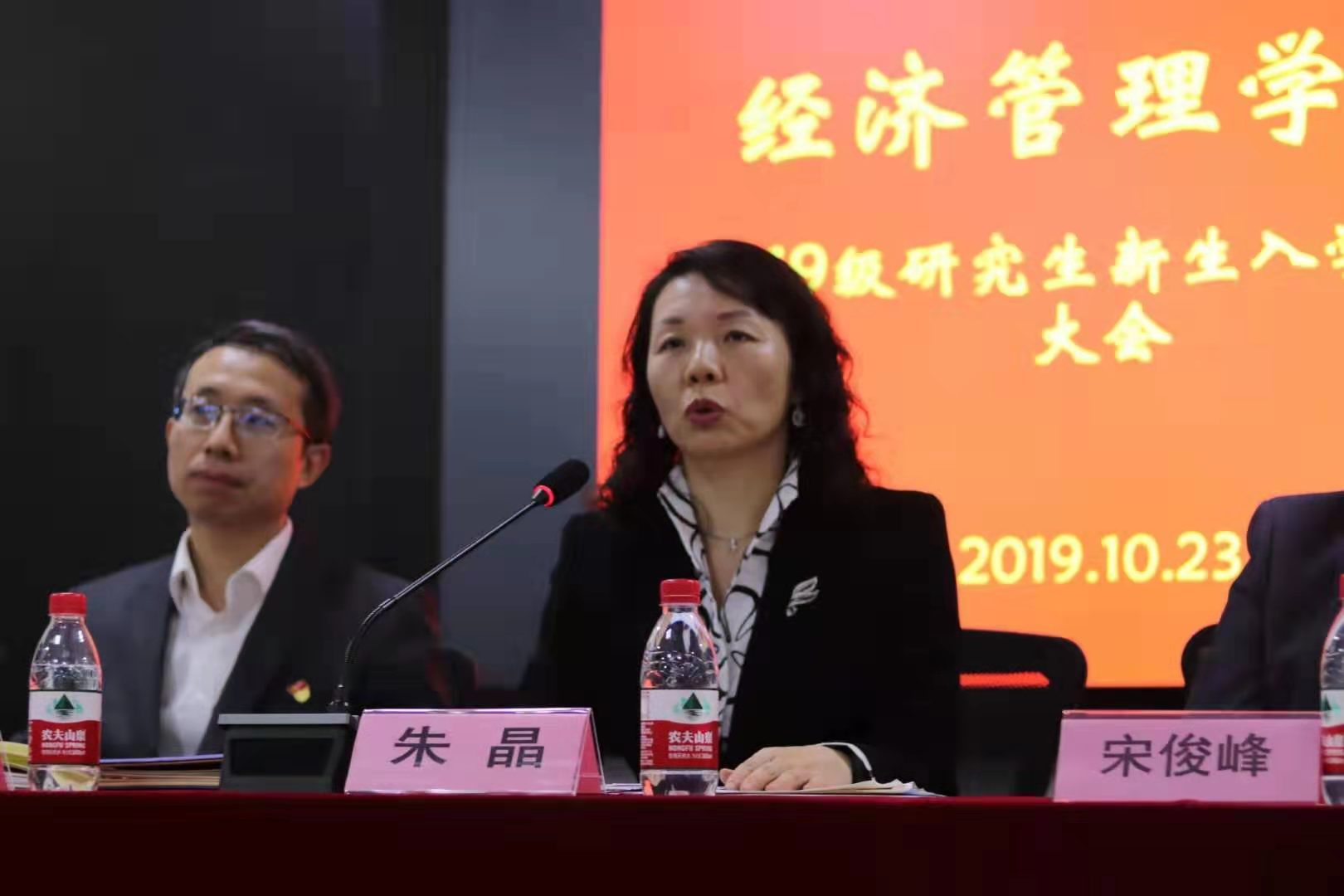 随后朱晶院长进行了院情介绍。朱院长说,经管学院是一个历史悠久,师资力量雄厚的学院;是一个人才辈出的学院,拥有众多杰出校友;是一个国际化程度很高的学院,在国内外具有显著影响力,多次组织国际会议,为硕博生的国际化以及联合培养成长成才提供了众多机会。她对2019级研究生新生提出殷切期望,希望同学们能够在学院得到全面成长,优化学习方法,学会探索,提升意志品质,强化自我管理,学习社交能力,严守学术道德,全面提升自身素质能力,以饱满的热情投入到新的学习和科研探索中,在经管学院谱写新篇章。