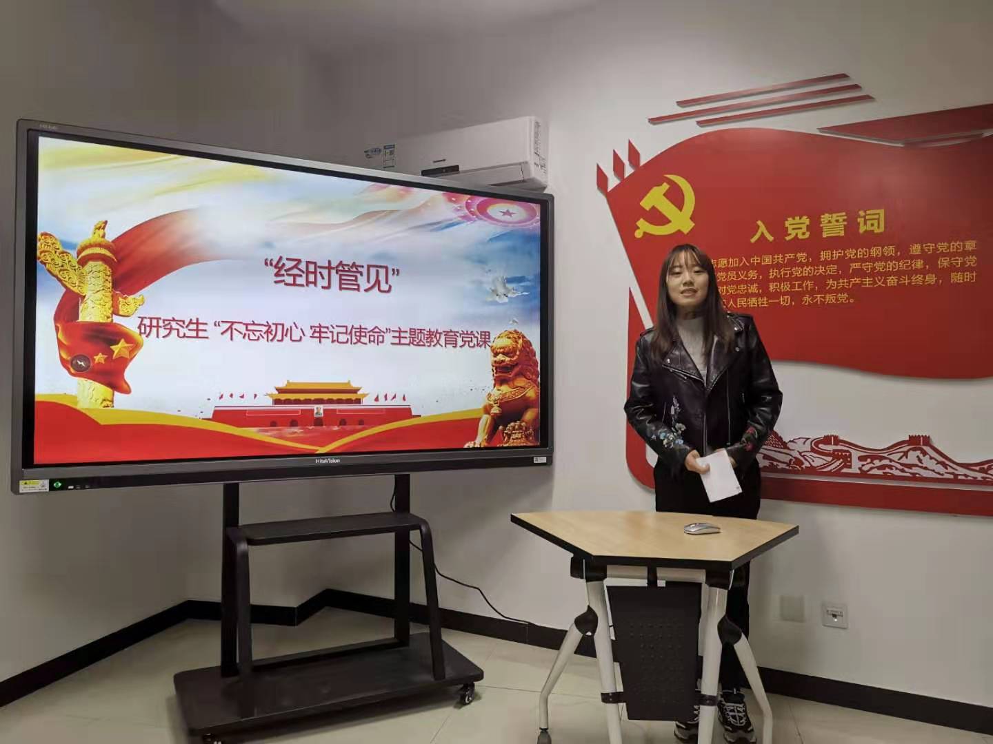 为积极响应党中央“不忘初心、牢记使命”主题教育的号召,深入学习宣传贯彻习近平总书记系列重要讲话精神,11月21日,beat365正版唯一官方网站以研究生党支部为依托,开展“经时管见”——研究生“不忘初心、牢记使命”主题教育党课活动,以激发研究生对国家时政热点的关注,提高beat365官网研究生党员的政治理论修养、党性修养和综合素质,更好地发挥学生党员的先锋模范作用。7个研究生党支部参加了此次党课活动,学院研究生辅导员张杨老师、本科生辅导员路行老师、行政党支部刘莉老师,以及20余位研究生代表作为评委参加了此次活动。