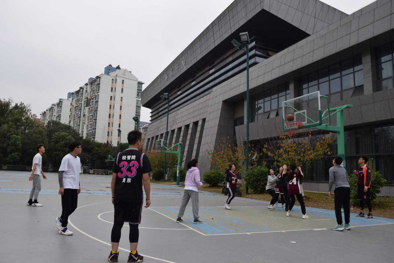 尽管天气寒冷,队员们仍摩拳擦掌,跃跃欲试。随着裁判哨音吹响,比赛正式开始。上午比赛为本研学生对抗,比赛分为四节,比赛中第一节和第三节为男生全场5v5,第二节和第四节趣味性地以男女混合参与的方式举行,最终本科生队以72:40的成绩取得第一场比赛的胜利。在上午比赛的休息时间,研究生队与本科生队也进行了一场男女混合的罚篮比赛,本科生队以18比12取得了罚篮比赛的胜利。