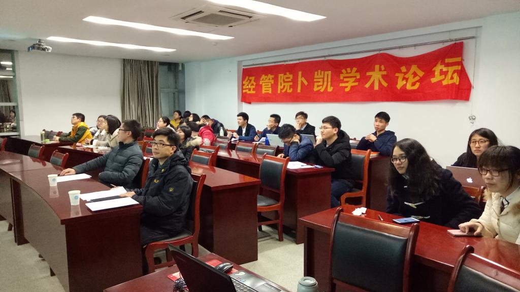 2017年3月24日晚7点,经管院研会学术部举办的第七十九期卜凯论坛在逸夫楼5086成功举办,李子健、杨宗耀、陈旭做了精彩的汇报,展进涛、周德老师给予了详细的点评。