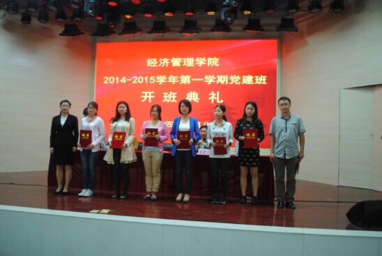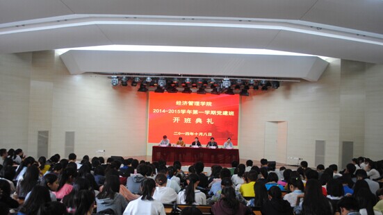 10月8日下午,beat365正版唯一官方网站2014-2015学年第一学期党建班开班典礼在大学生活动中心举行。beat365正版唯一官方网站党委副书记卢忠菊,辅导员施培菊、张杨、周琨、葛焱出席会议。会议由葛焱主持。