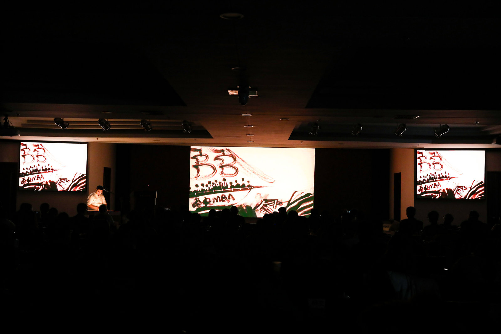 校友代表发言环节,全体与会人员观看了《与秾相伴的美好时光》主题沙画。