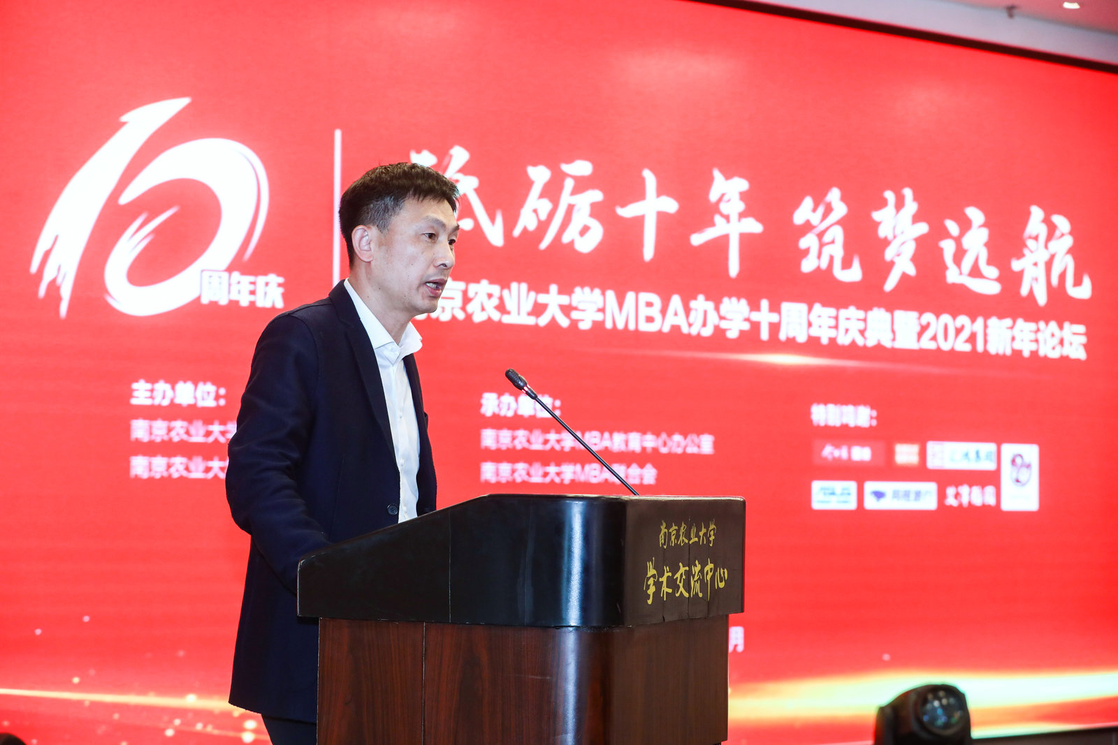 在嘉宾致辞环节,南京航空航天大学MBA教育中心执行主任杜刚代表兄弟高校向南农MBA十周年生日致以热烈祝贺,他表示未来南京航空航天大学MBA中心将同南农MBA中心及在宁其他兄弟高校MBA中心、商学院一起,携手共进、同心协办,开展更广泛的交流与合作。