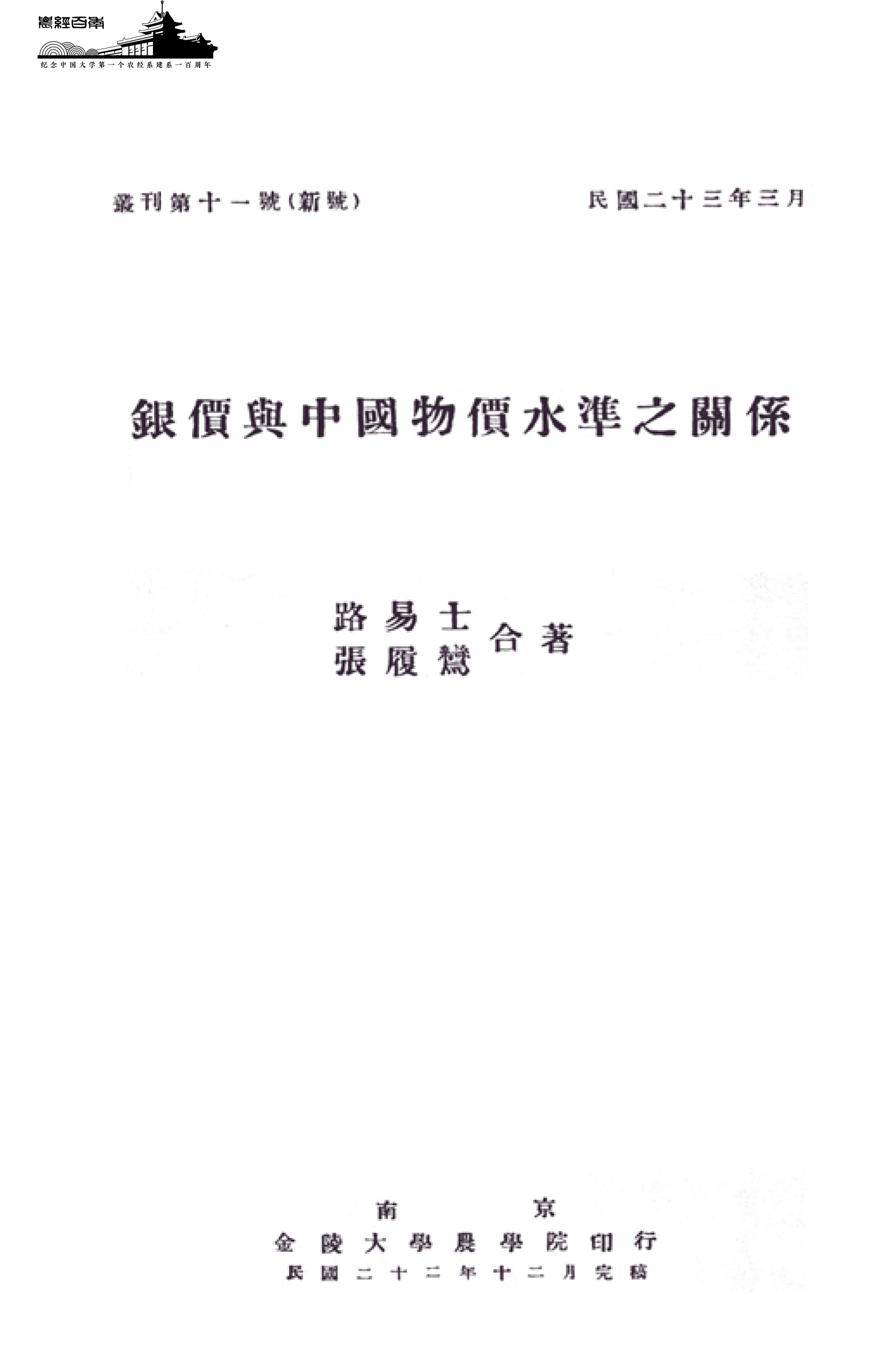 银价与中国物价水准之关系
