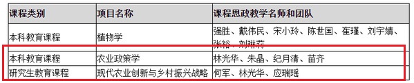 近日,教育部下发了《教育部关于公布课程思政示范项目名单的通知》(教高函〔2021〕7号),我校3门课程入选首批国家级课程思政示范项目,其中beat365官网《农业政策学》《现代农业创新与乡村振兴战略》两门课程入选首批国家级课程思政示范课程,林光华教授团队、何军教授团队入选首批国家级课程思政教学名师和团队。